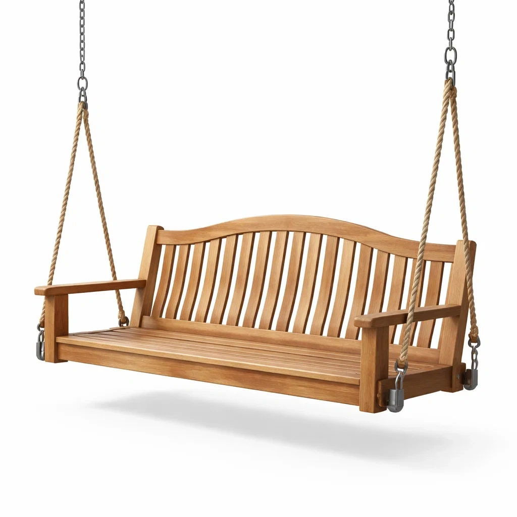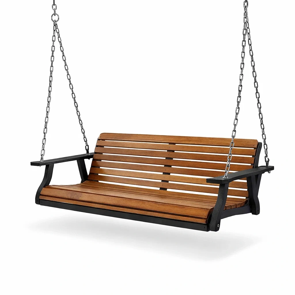 Balancelle de porche en bois de sapin avec chaînes métalliques
