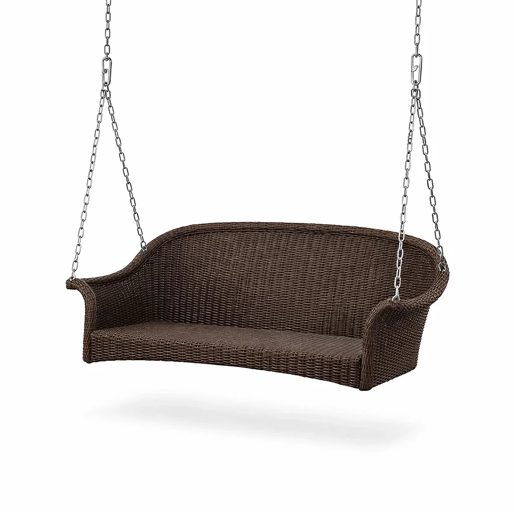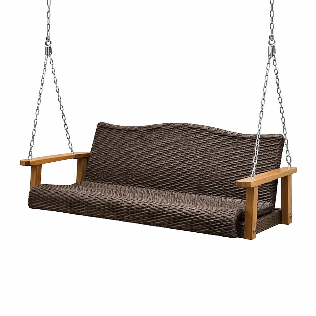 Balancelle de porche en résine tressée brun avec chaînes métalliques