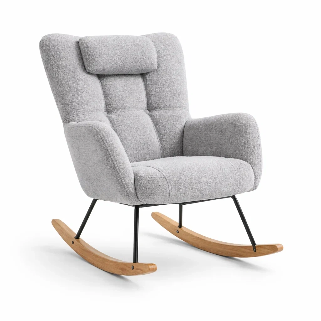 Fauteuil à bascule en tissu polyester gris avec bois et métal