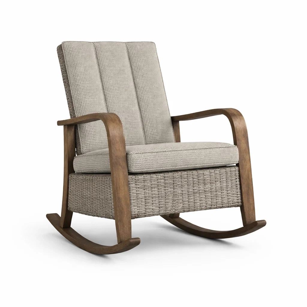 Fauteuil à bascule en bois avec coussins en tissu beige