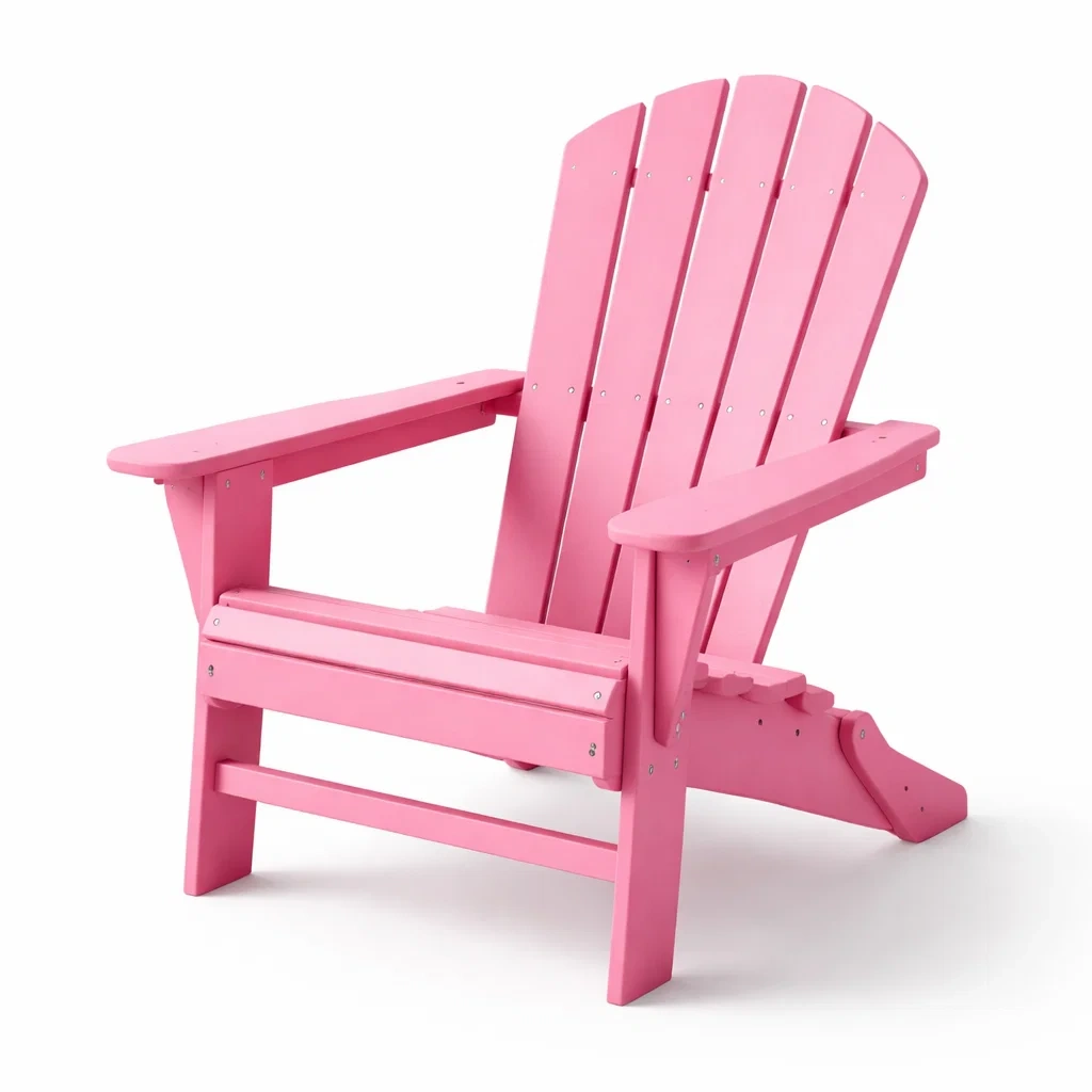 Chaise Adirondack fabriquée en polyéthylène haute densité recyclé. Dimensions : 80 cm x 75 cm x 92 cm. Charge maximale supportée : 100 kg. Nettoyage avec un chiffon humide.