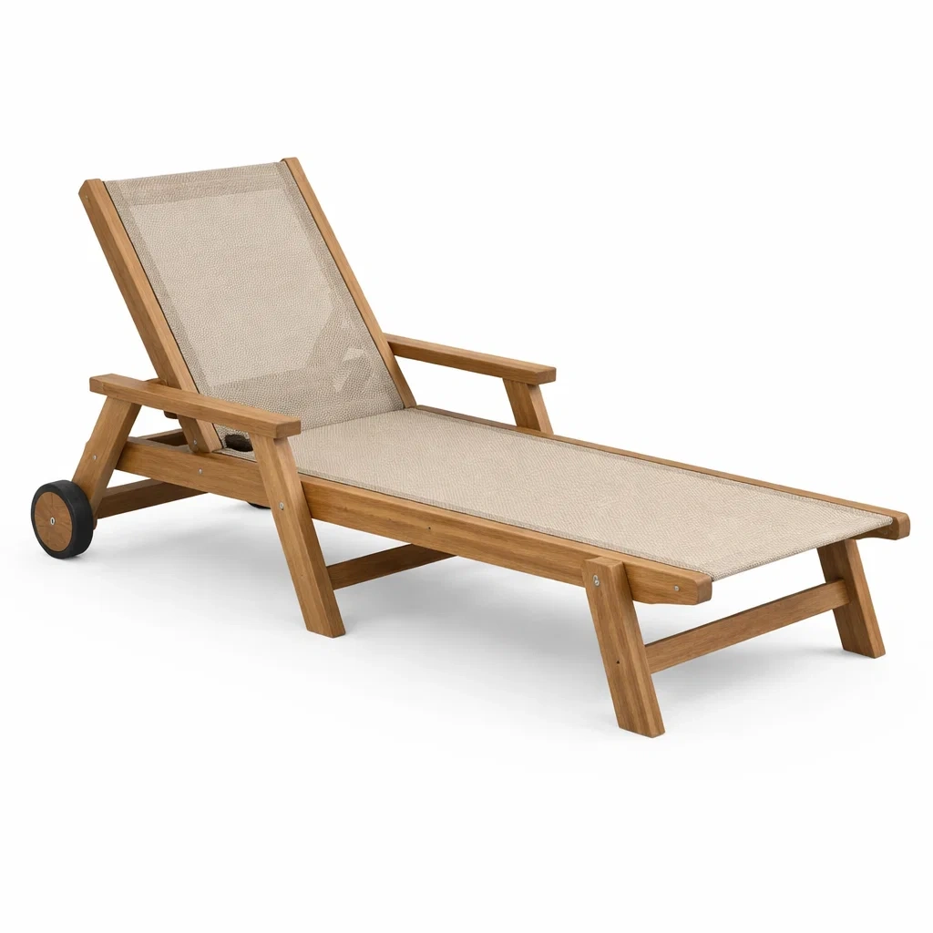 Chaise longue de jardin en bois avec textilène réglable beige