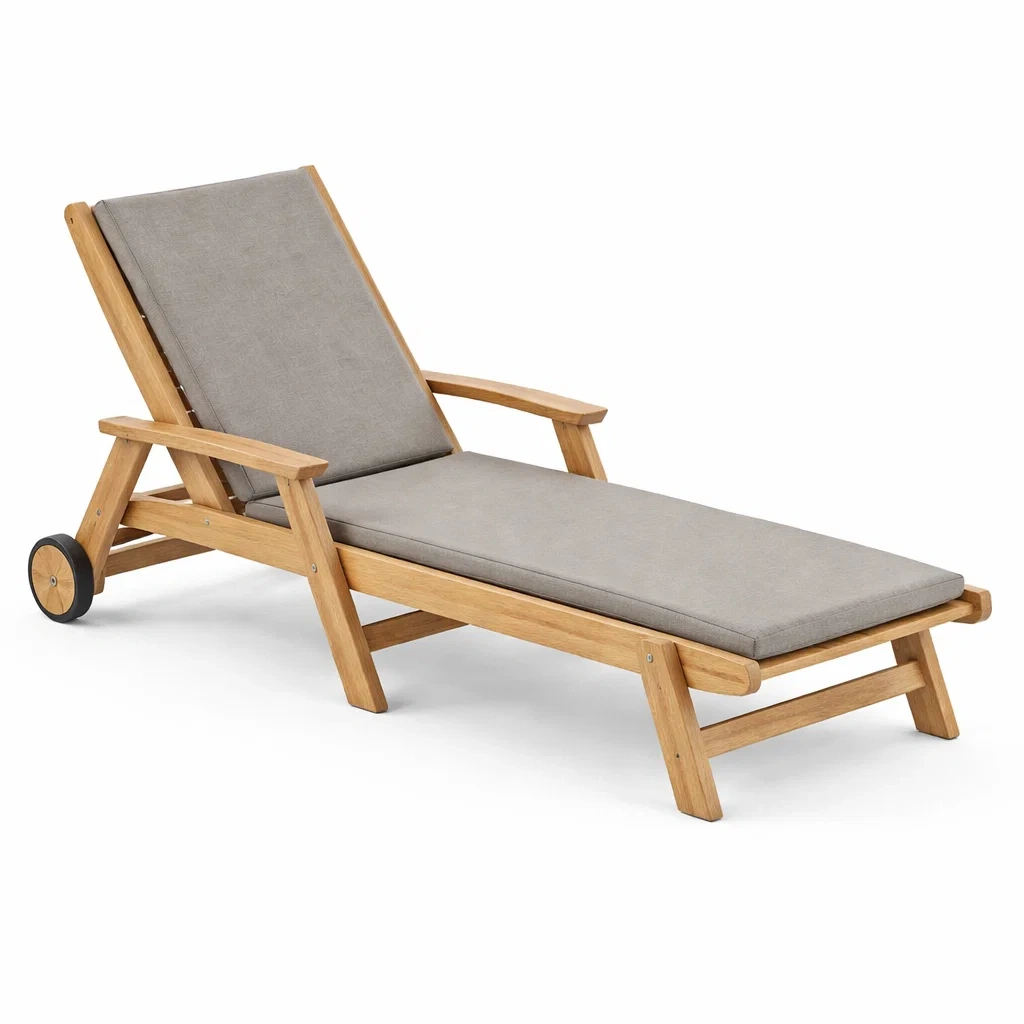 Chaise longue en bois réglable avec coussin en tissu gris